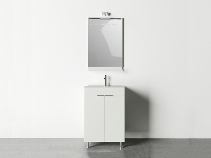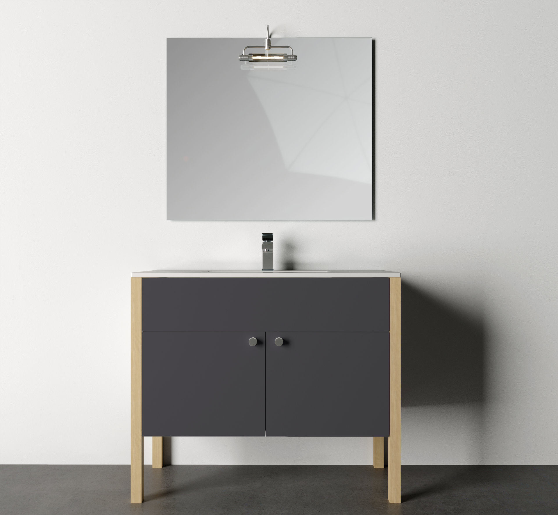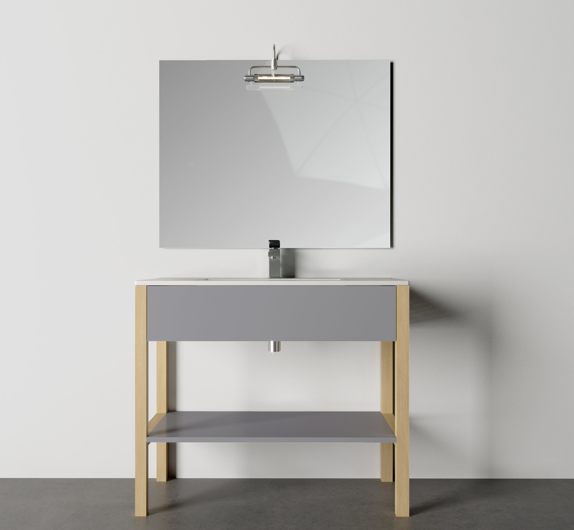 Colecția este disponibilă în două nuanțe. Mobilierul este compus din bază, oglindă și stender prosoape.