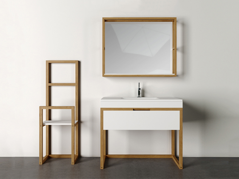 Designul acestui mobilier a fost inspirat de forma lavoarului pentru care a fost special conceput. Un joc de linii și texturi ce a rezultat într-o simplă și, în același timp, expresivă soluție.