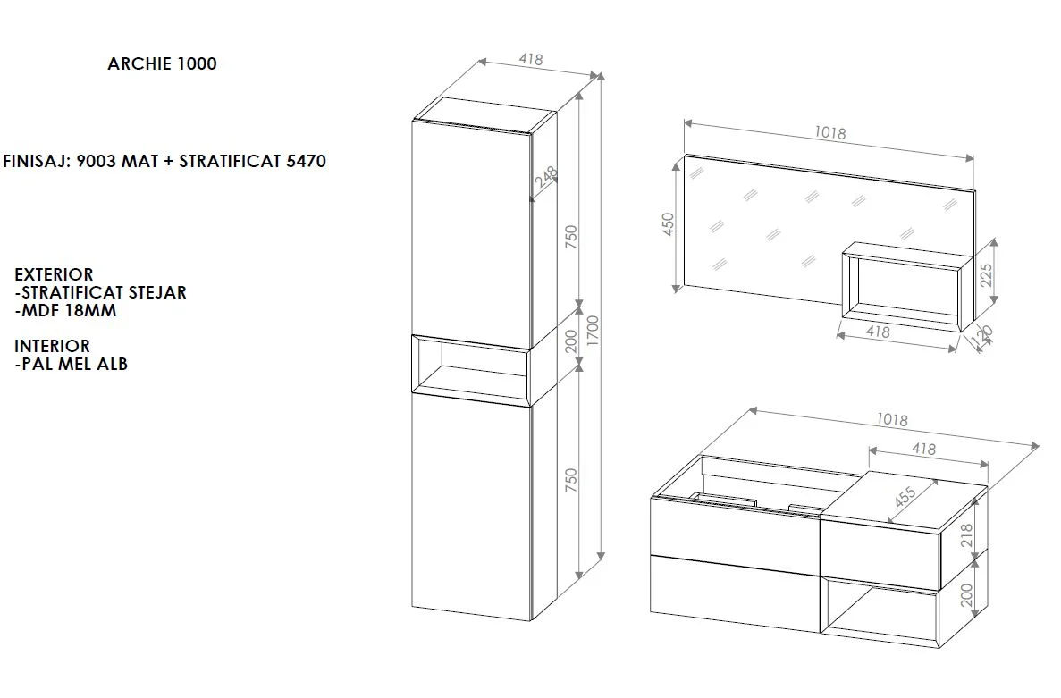 MF ARCHIE BAZA 1S/PUSH 1018X453X400 INT STRATIFICAT STJ 5470 EXT RAL 7037 MAT+ CUTIE INF 418X452X200