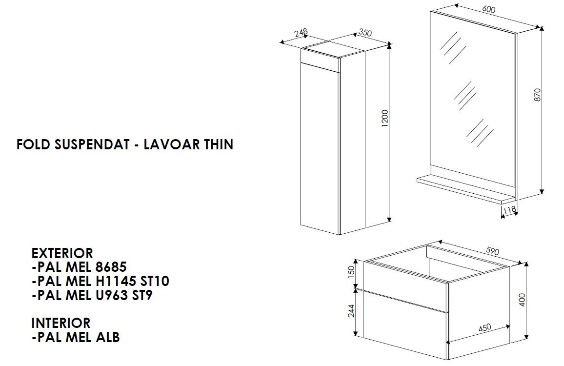 MF FOLD SUSPENDAT DULAP 350X250X1200 PAL MELAMINAT U963 ST9 GRI DIAMANT