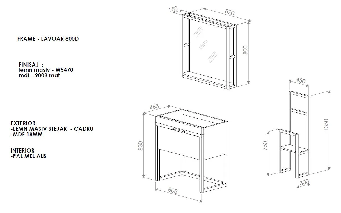 MF FRAME BAZA 1S 800X456X830 LEMN MASIV STEJAR GRI FOFI 02/ PAL FURNIRUIT STEJAR 5443