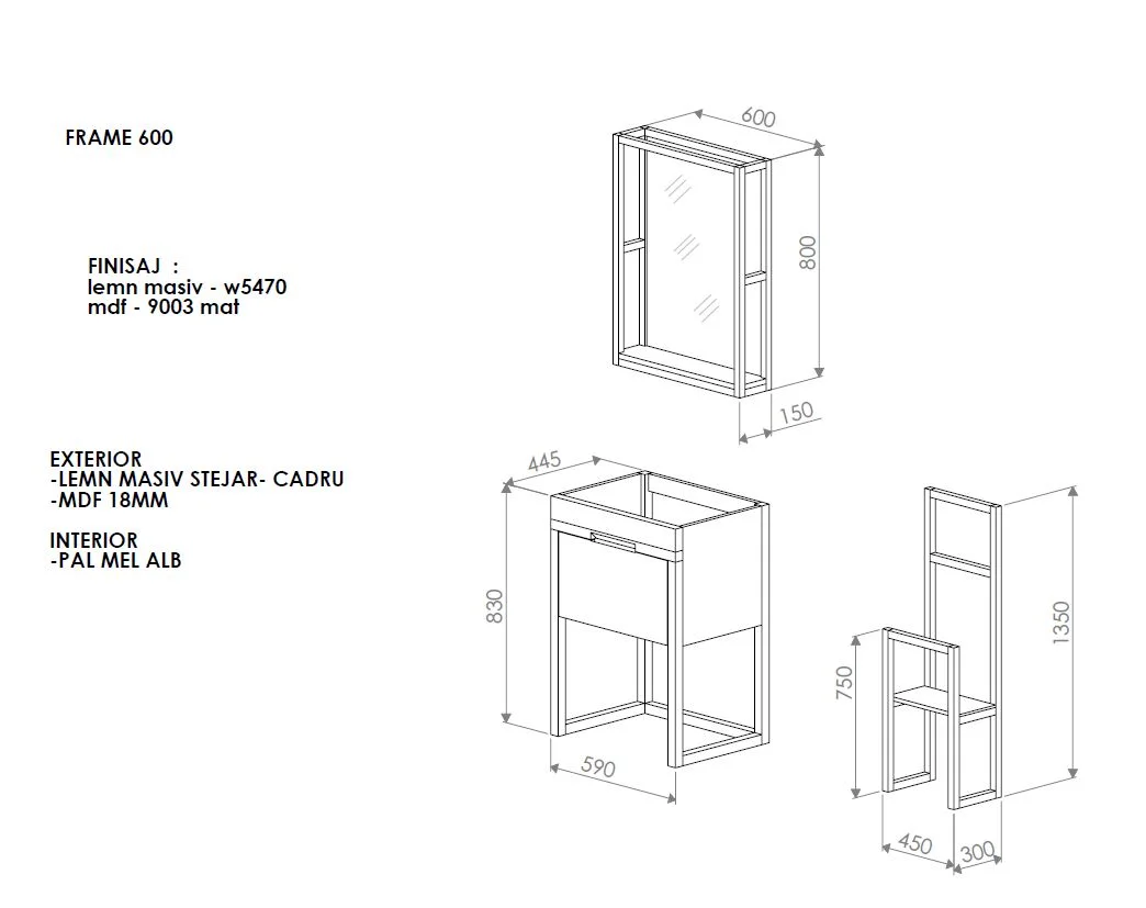 MF FRAME OGLINDA 600X150X800 LEMN MASIV STEJAR STEJAR 5470/ MDF VOPSIT MAT ALB