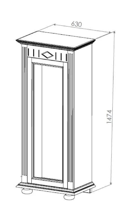 Vitrina construita integral din lemn masiv de brad , ofera un spatiu de depozitare practic cu rafturi ce pot fii ajustate pe inaltime Dimensiunile totale : latime 63 cm, adancime 39 cm, inaltime 147 cm. Nu necesita asamblare. Face parte din Colectia Noblesse